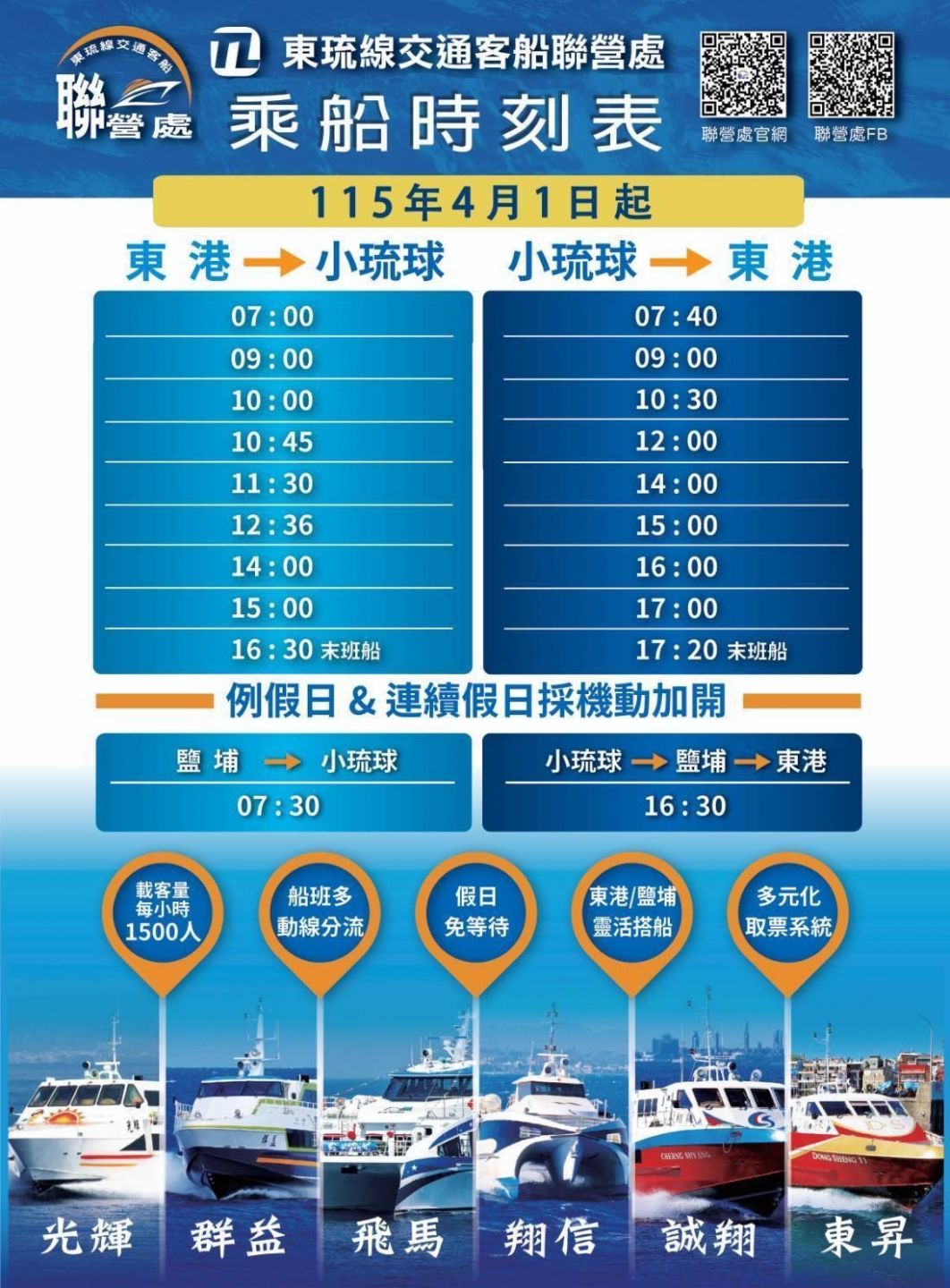 ※如遇旅遊旺季,船公司會依現場人數,決定是否加開班次,現場有船就可搭乘。